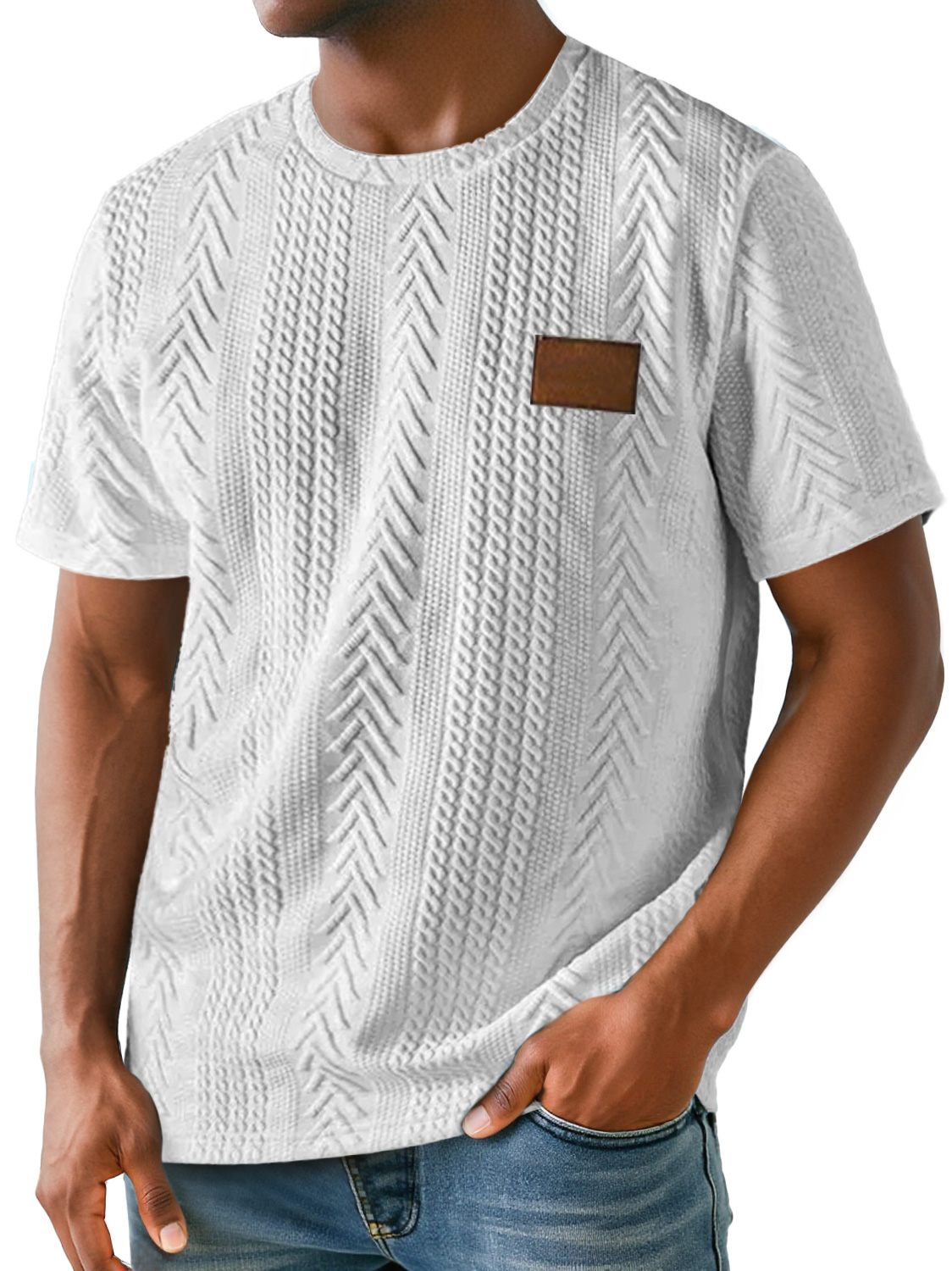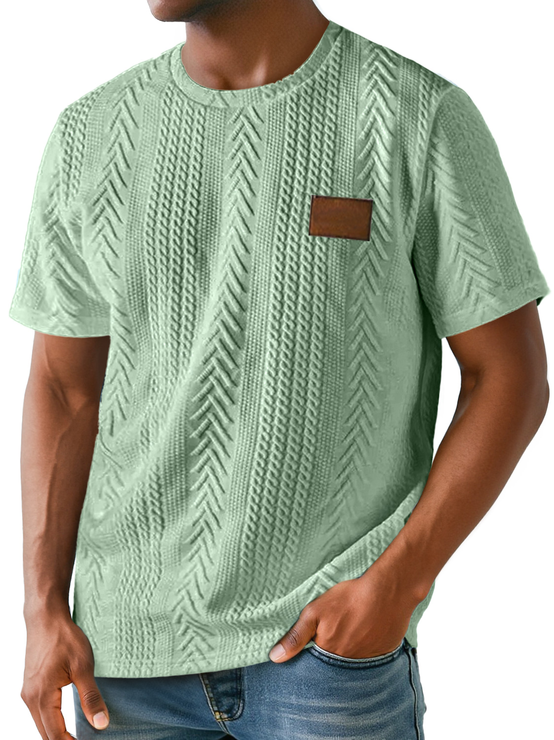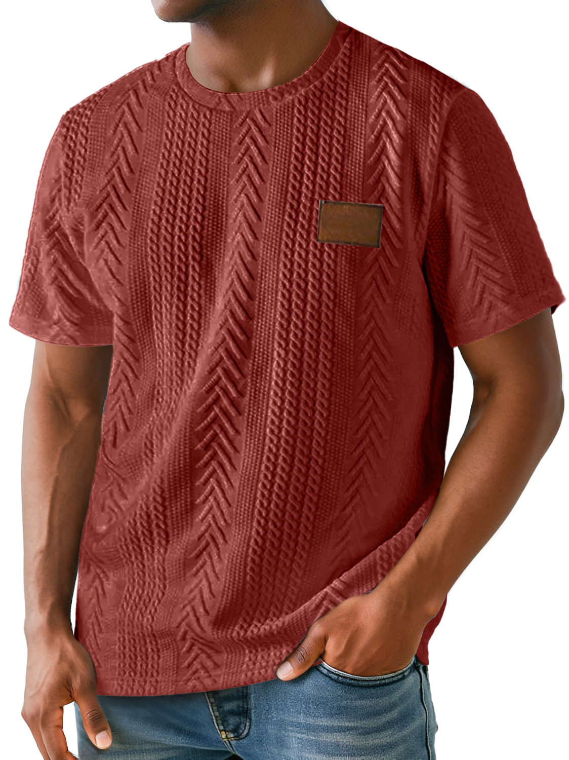 Men's Daily Round Neck Simple Texture Embroidered Label Casual Solid Color Short-sleeved T-shirt