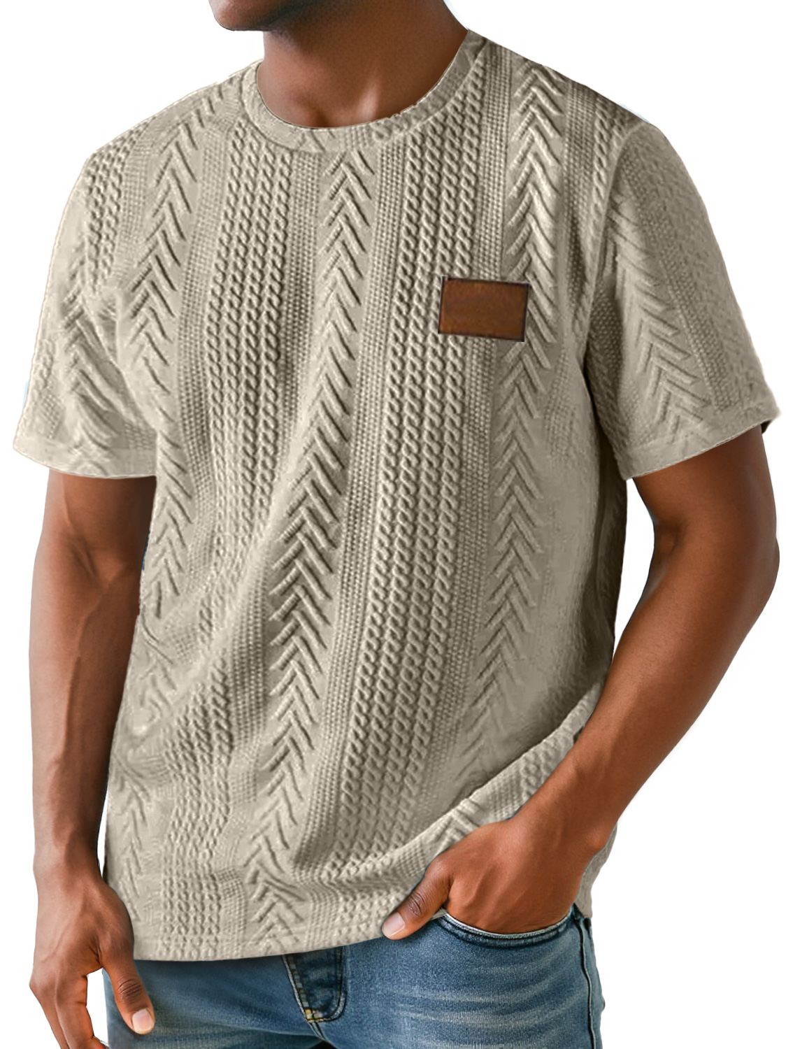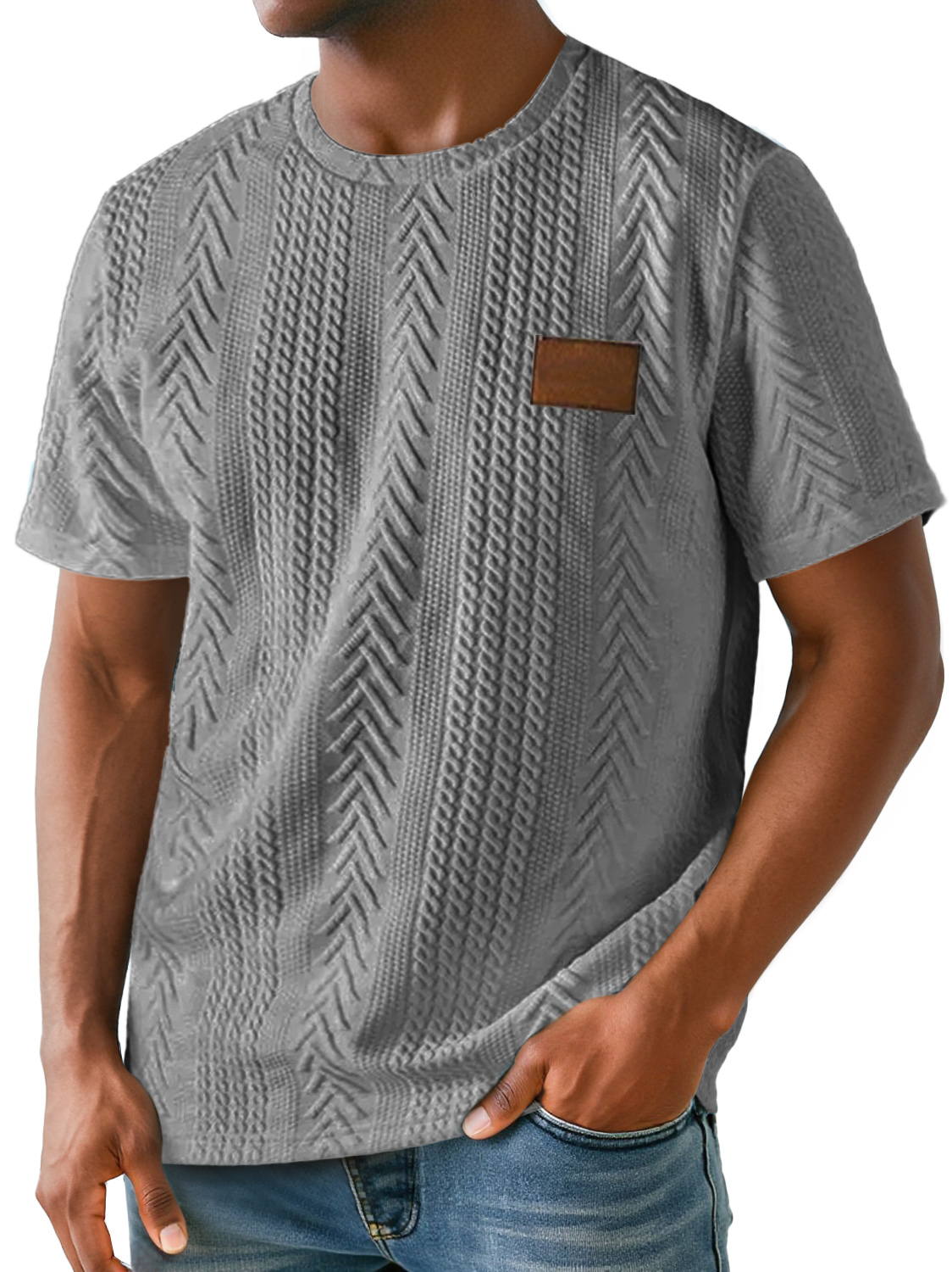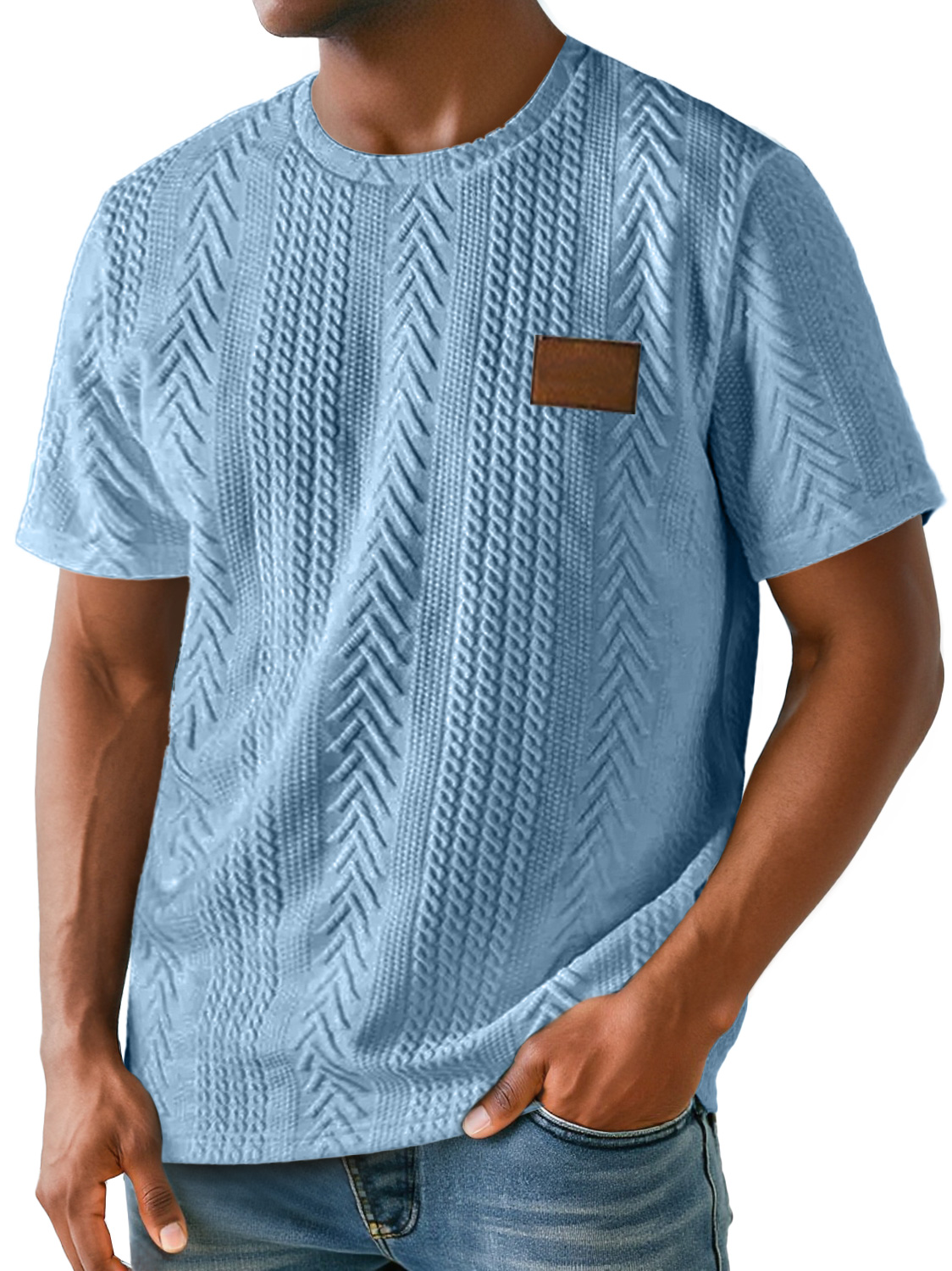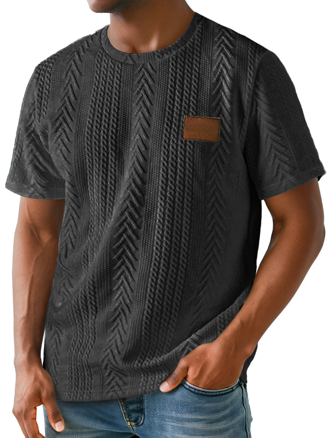 Men's Daily Round Neck Simple Texture Embroidered Label Casual Solid Color Short-sleeved T-shirt