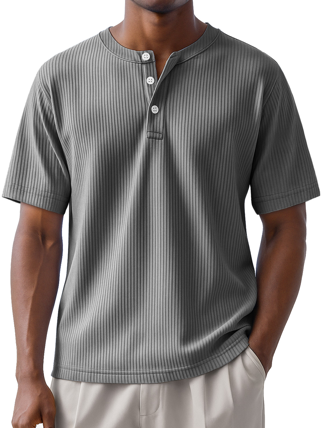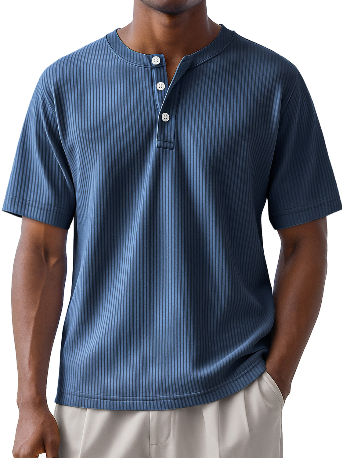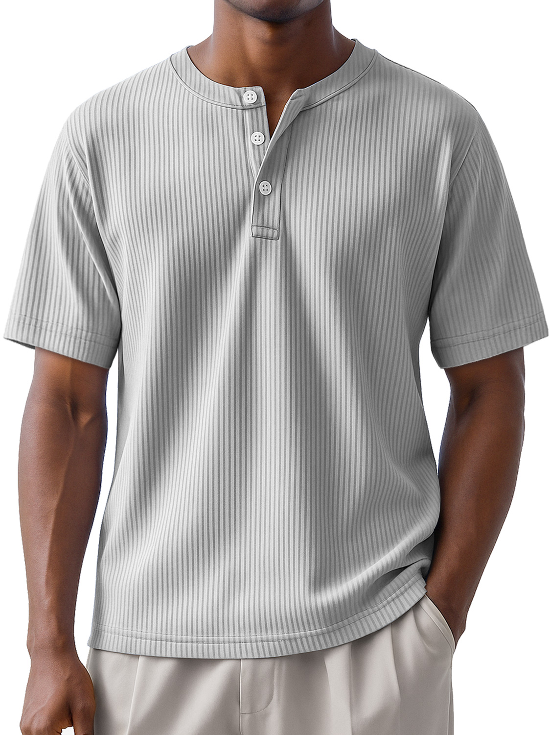 Men's Daily Striped Casual Short Sleeve Henley Shirt