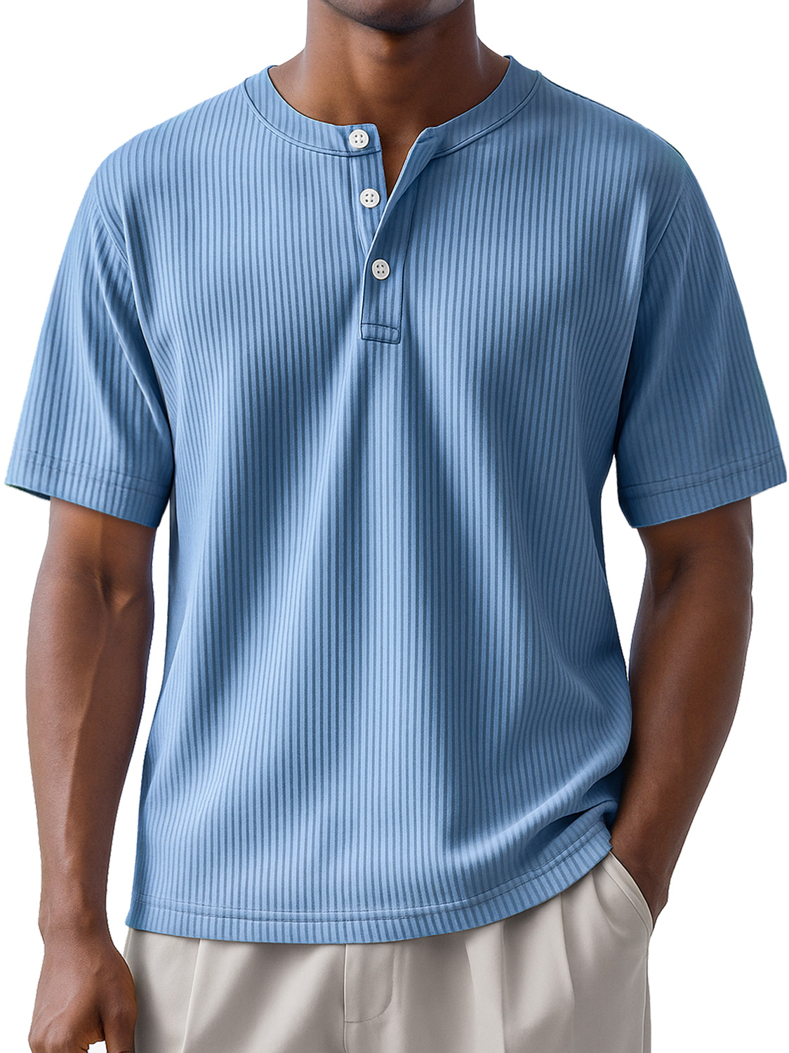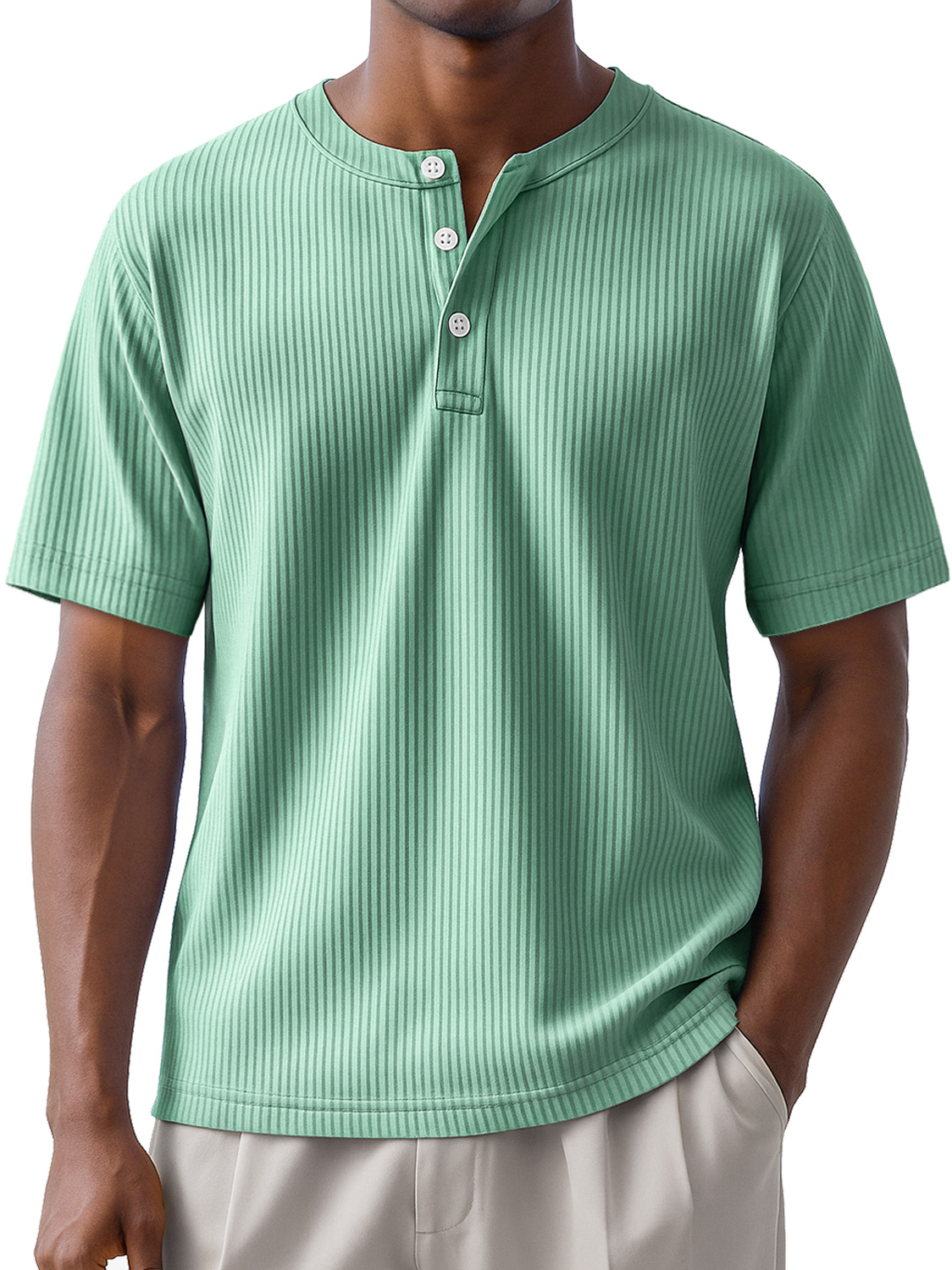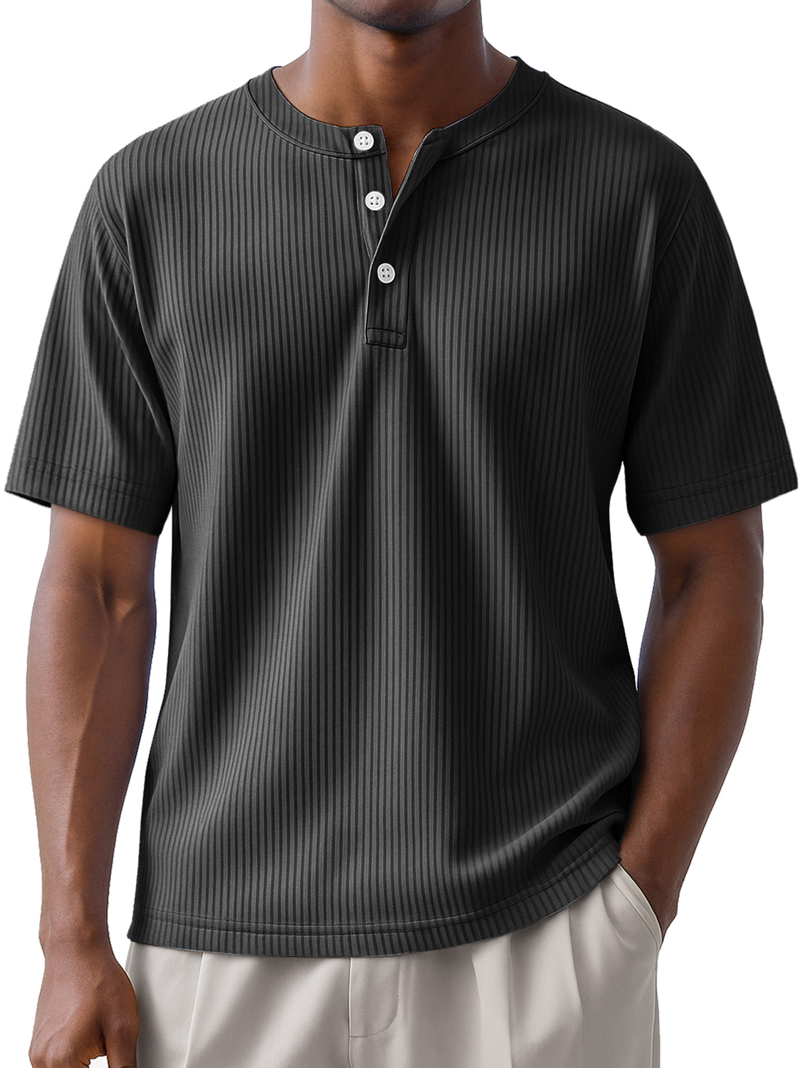 Men's Daily Striped Casual Short Sleeve Henley Shirt