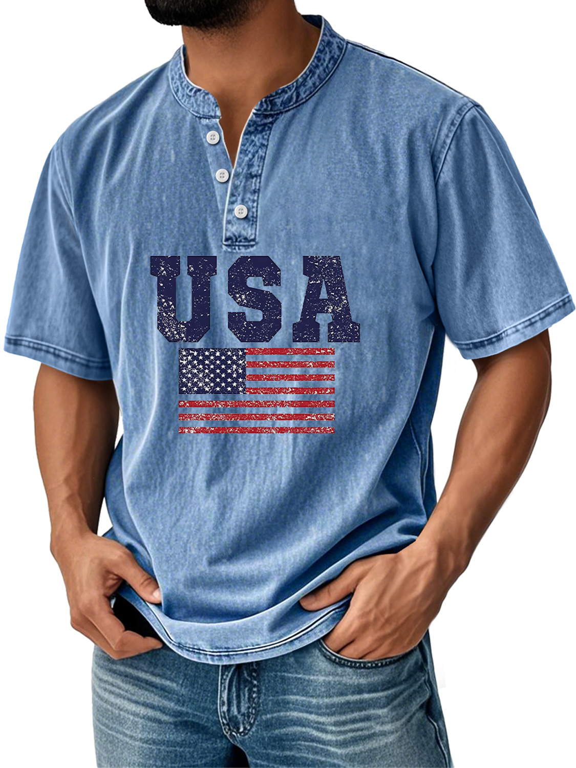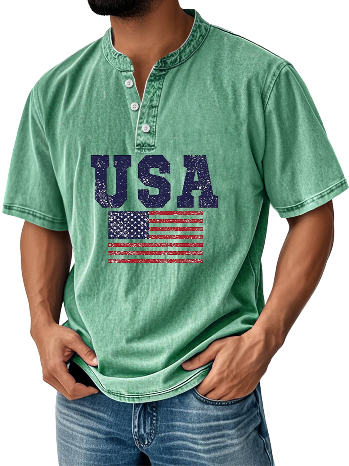 Men's Everyday Independence Day Flag Print Casual Stand Collar Short Sleeve Henley Shirt