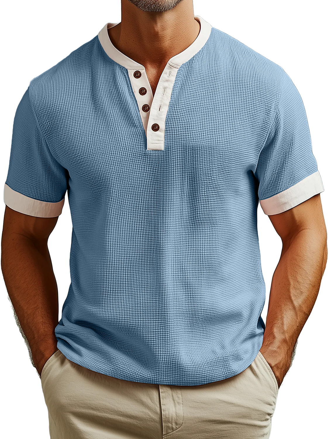 Men's Everyday Waffle Colorblock Casual Short Sleeve Henley Shirt