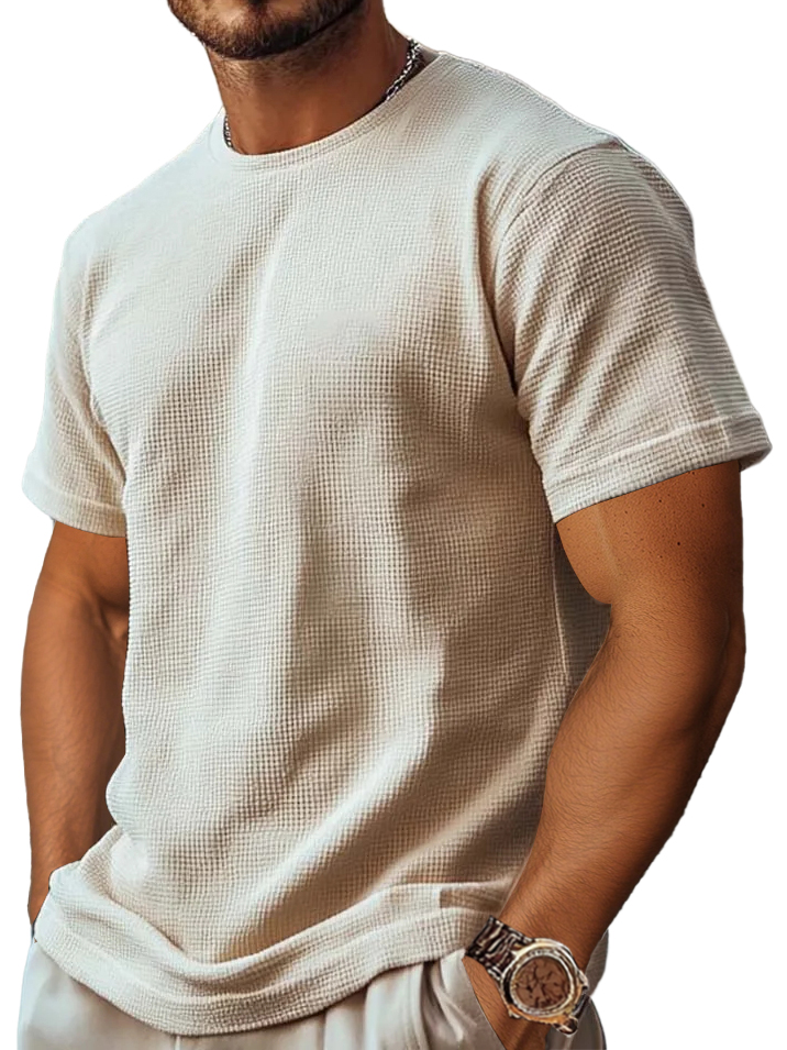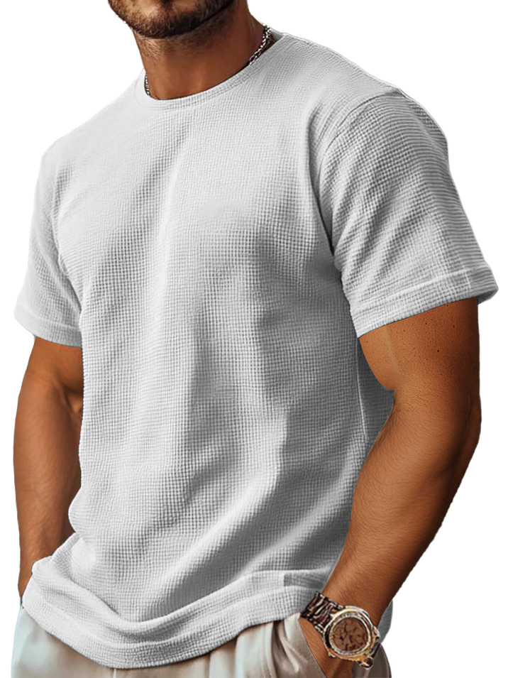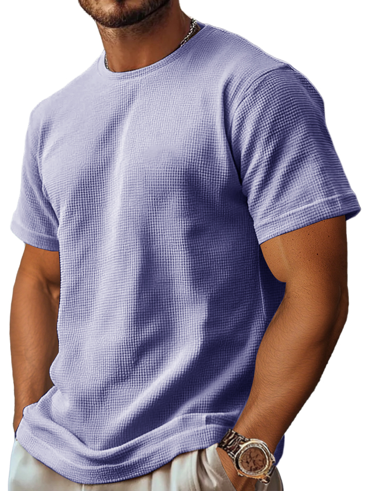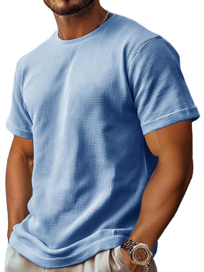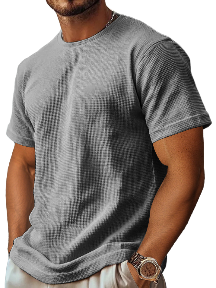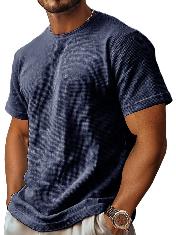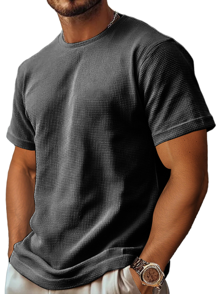 Men's Retro And Stylish Waffle Fabric With A Comfortable, Basic Straight-shoulder Slim-fitting T-shirt