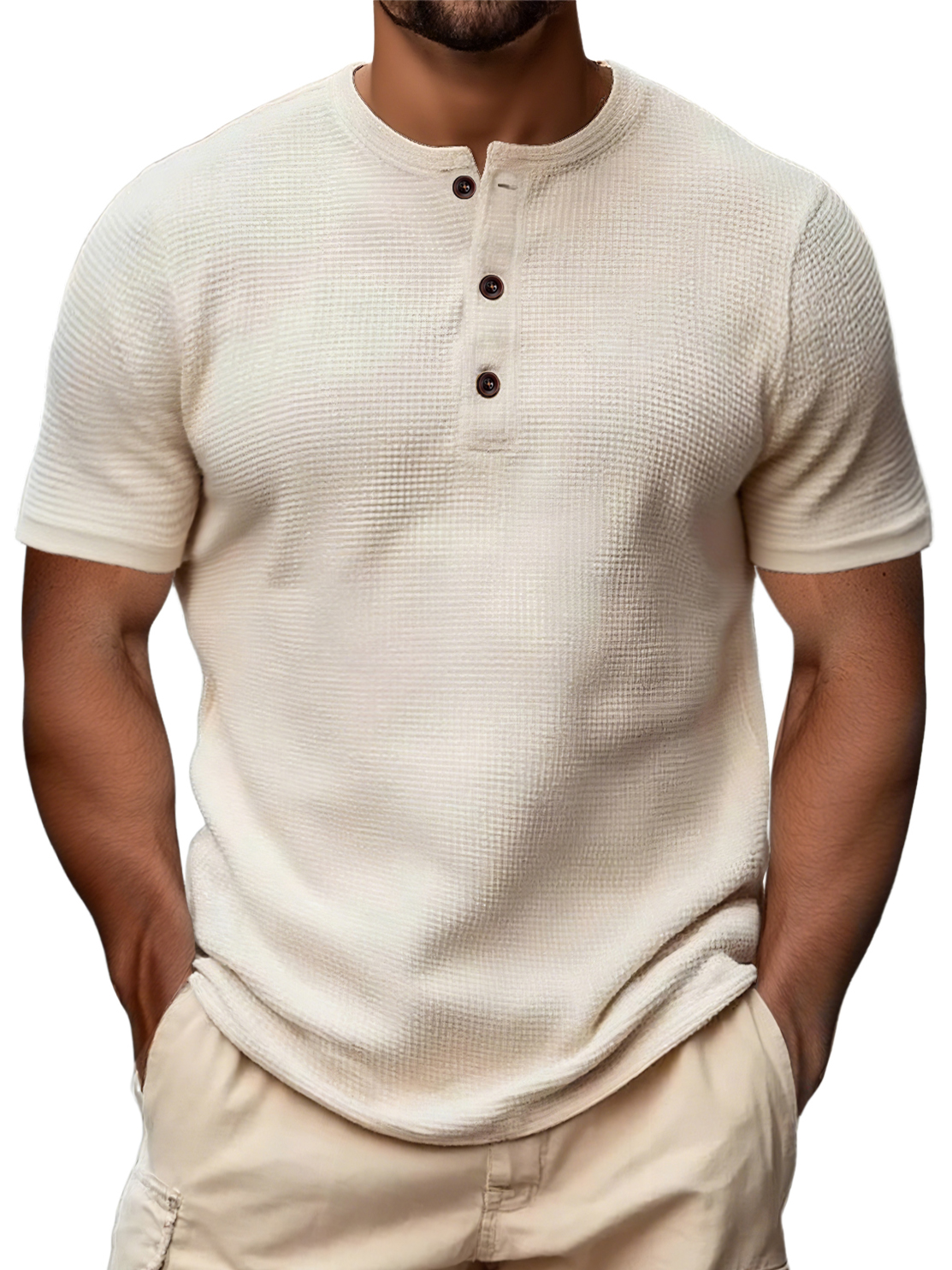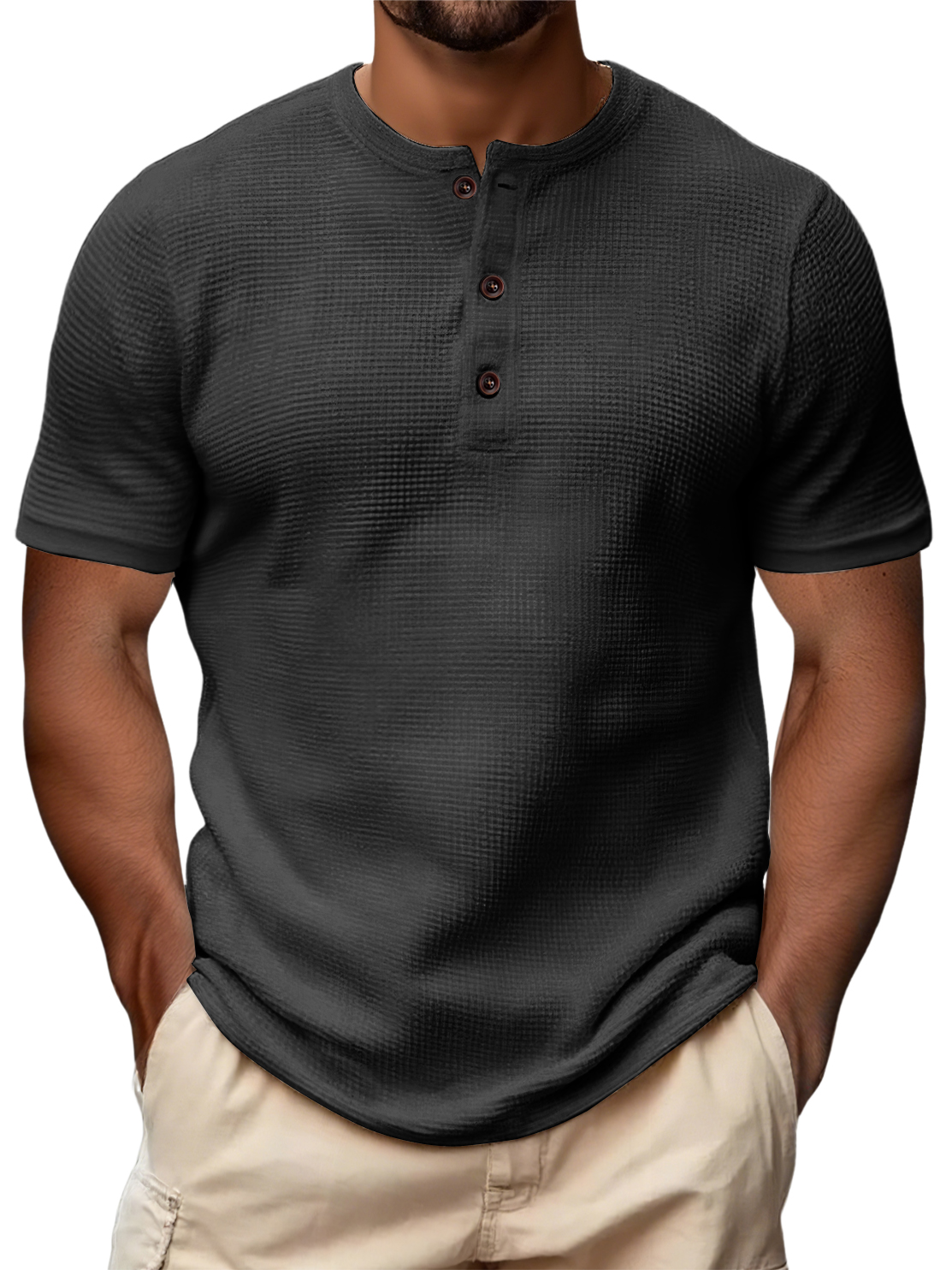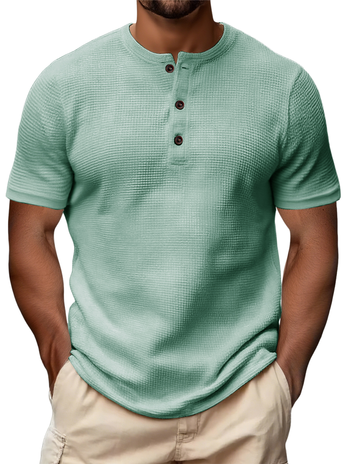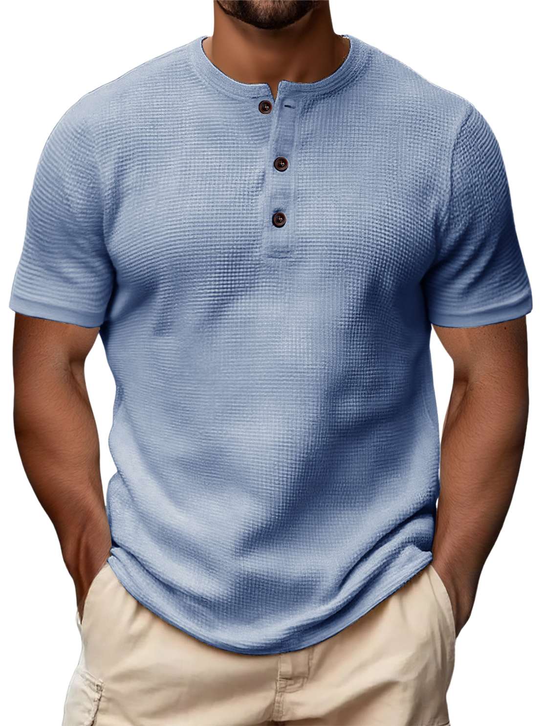 Men's Retro Casual Waffle Fabric Comfortable Henley Collar Top