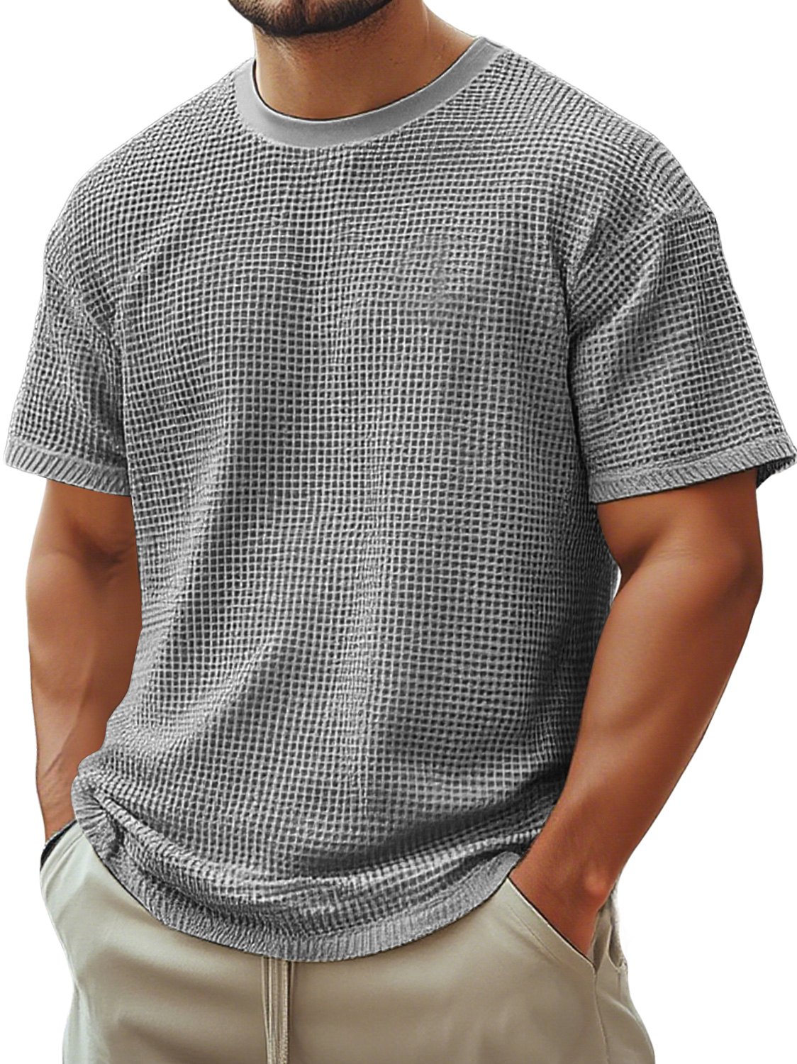 Men's Retro Crew Neck Waffle Casual Short Sleeve T-Shirt