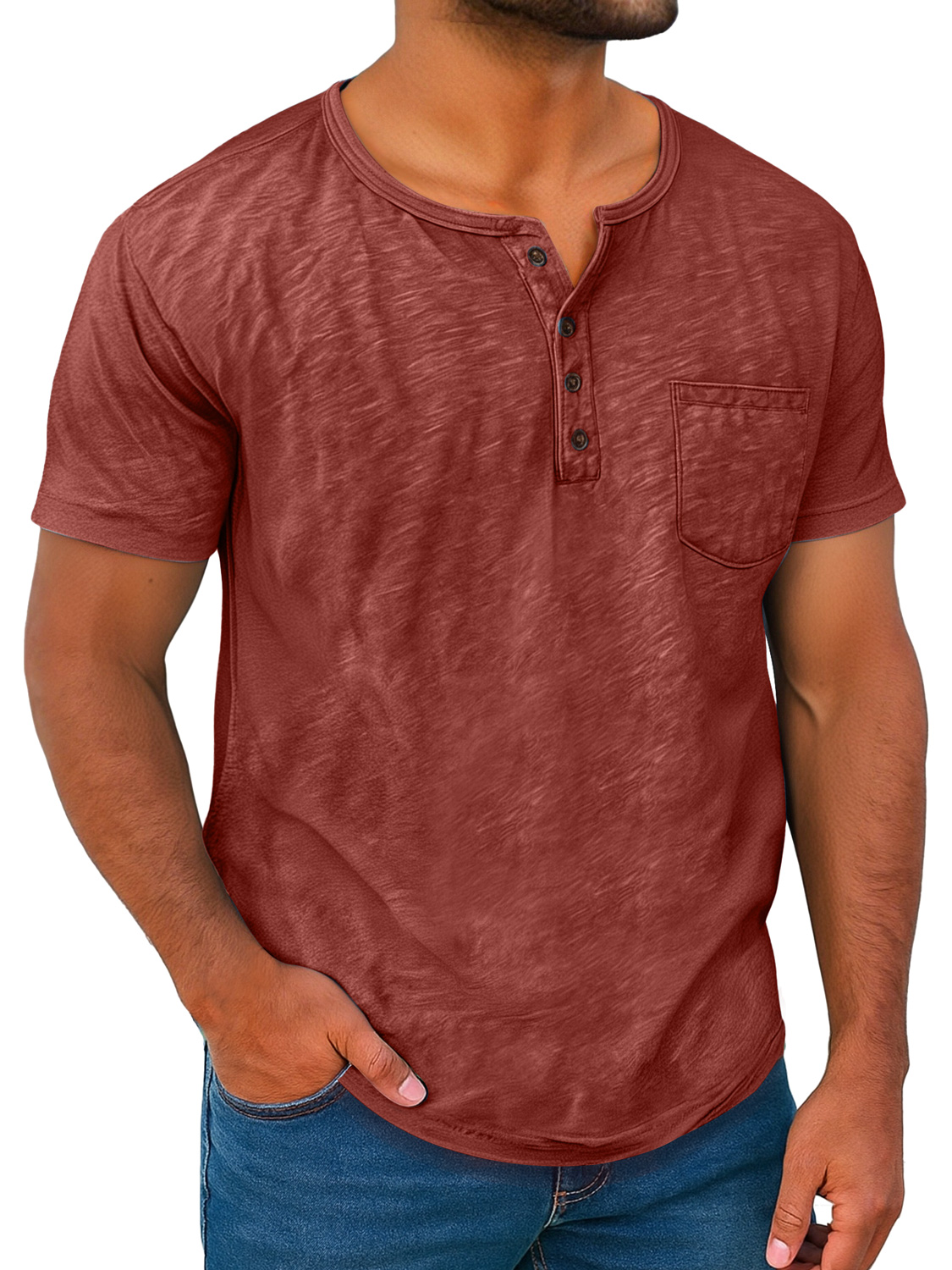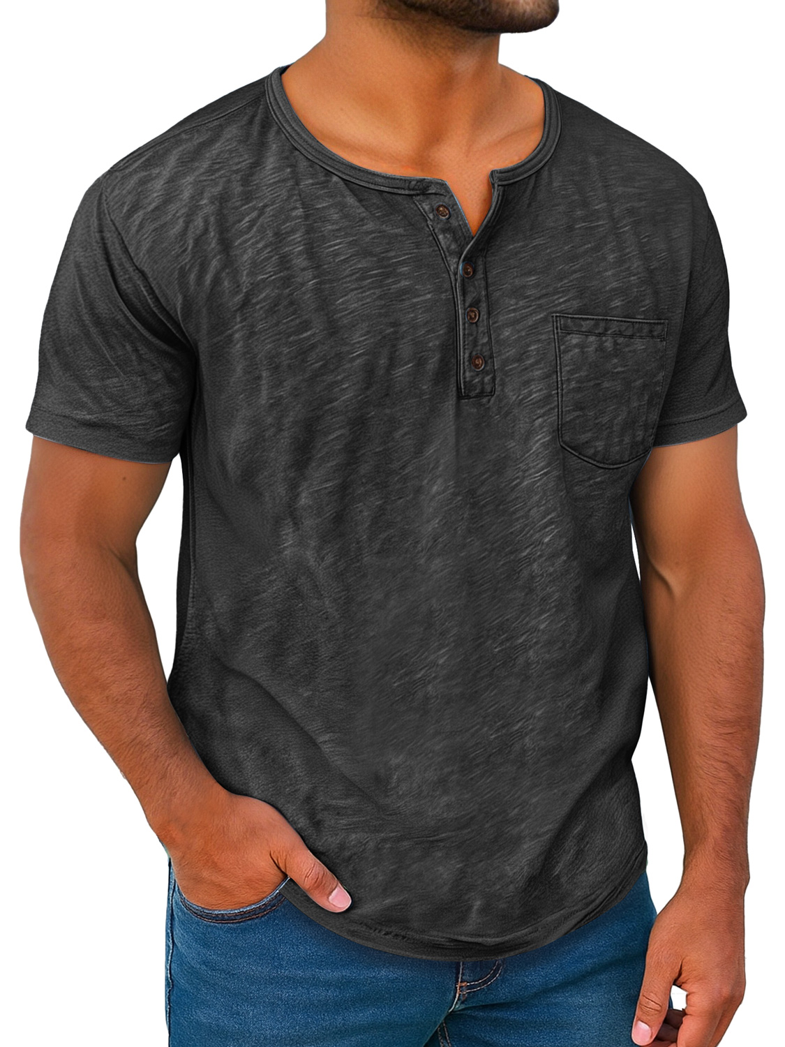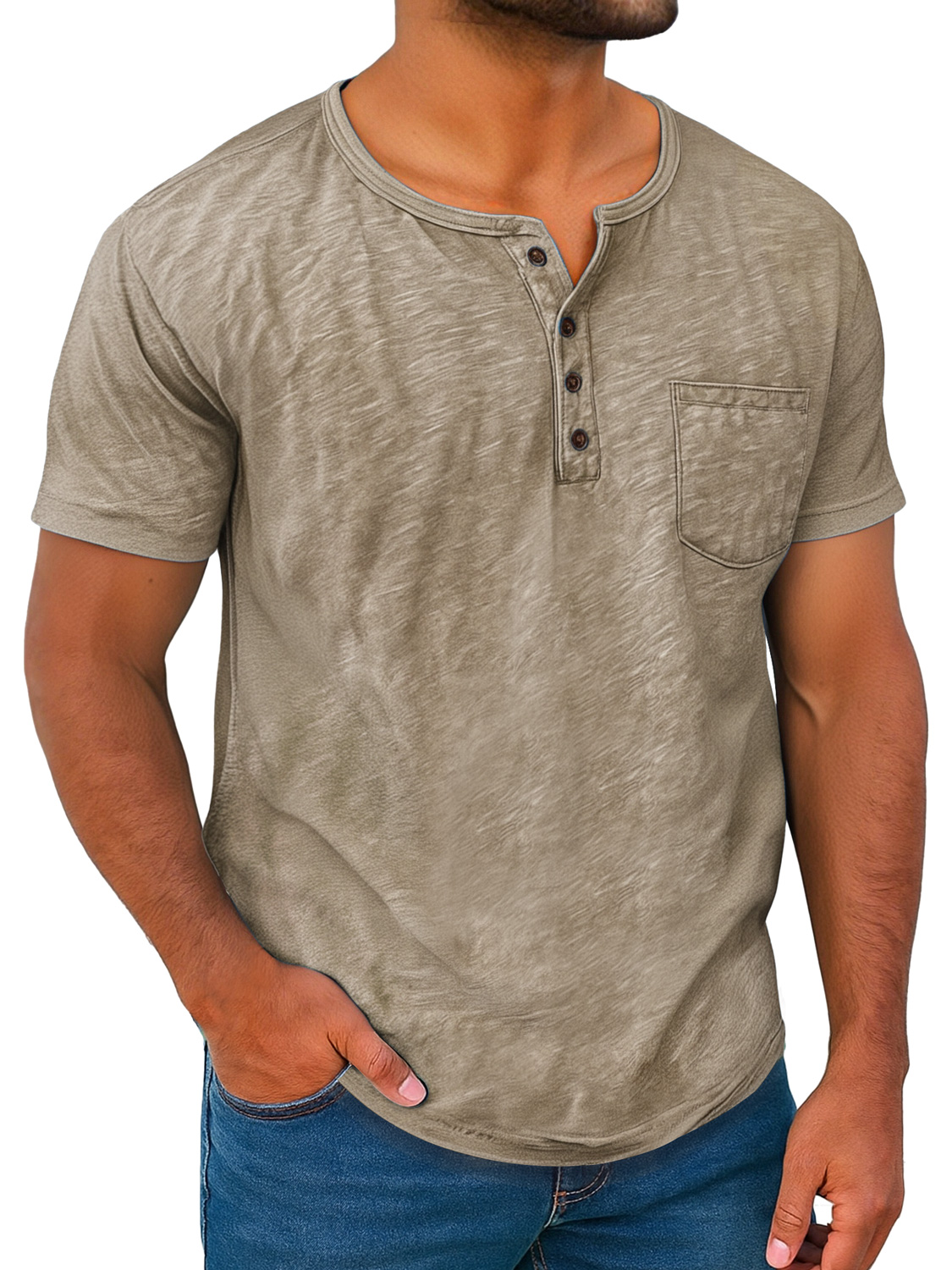 Men's Retro Everyday Casual Button-Down Short Sleeve Henley Shirt