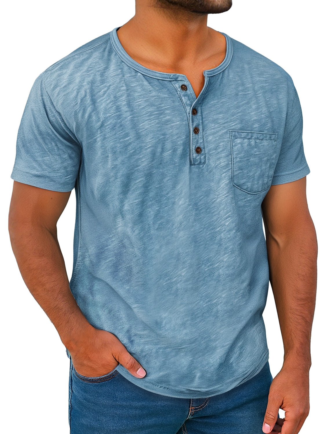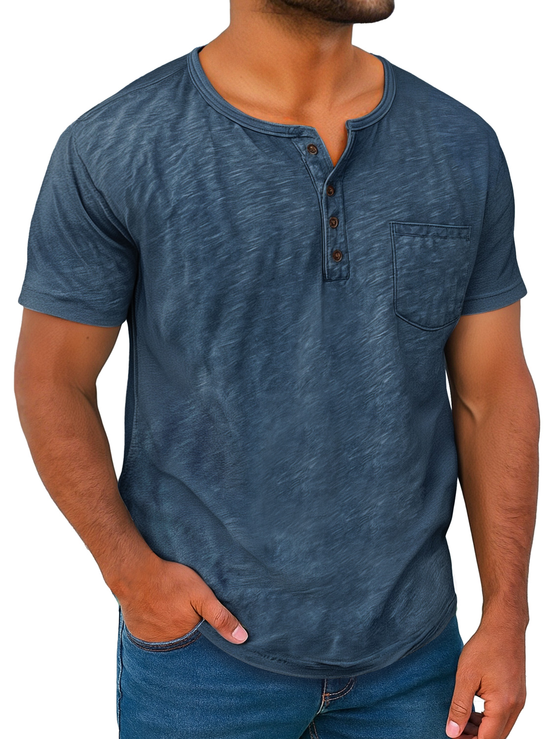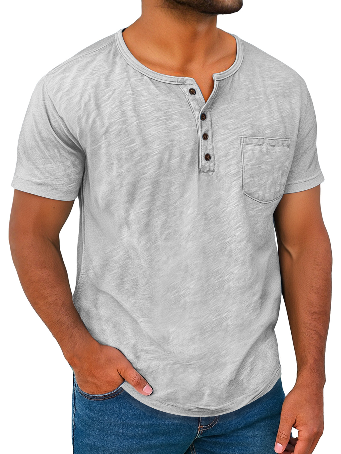 Men's Retro Everyday Casual Button-Down Short Sleeve Henley Shirt