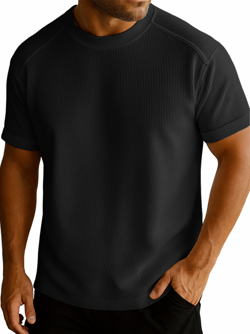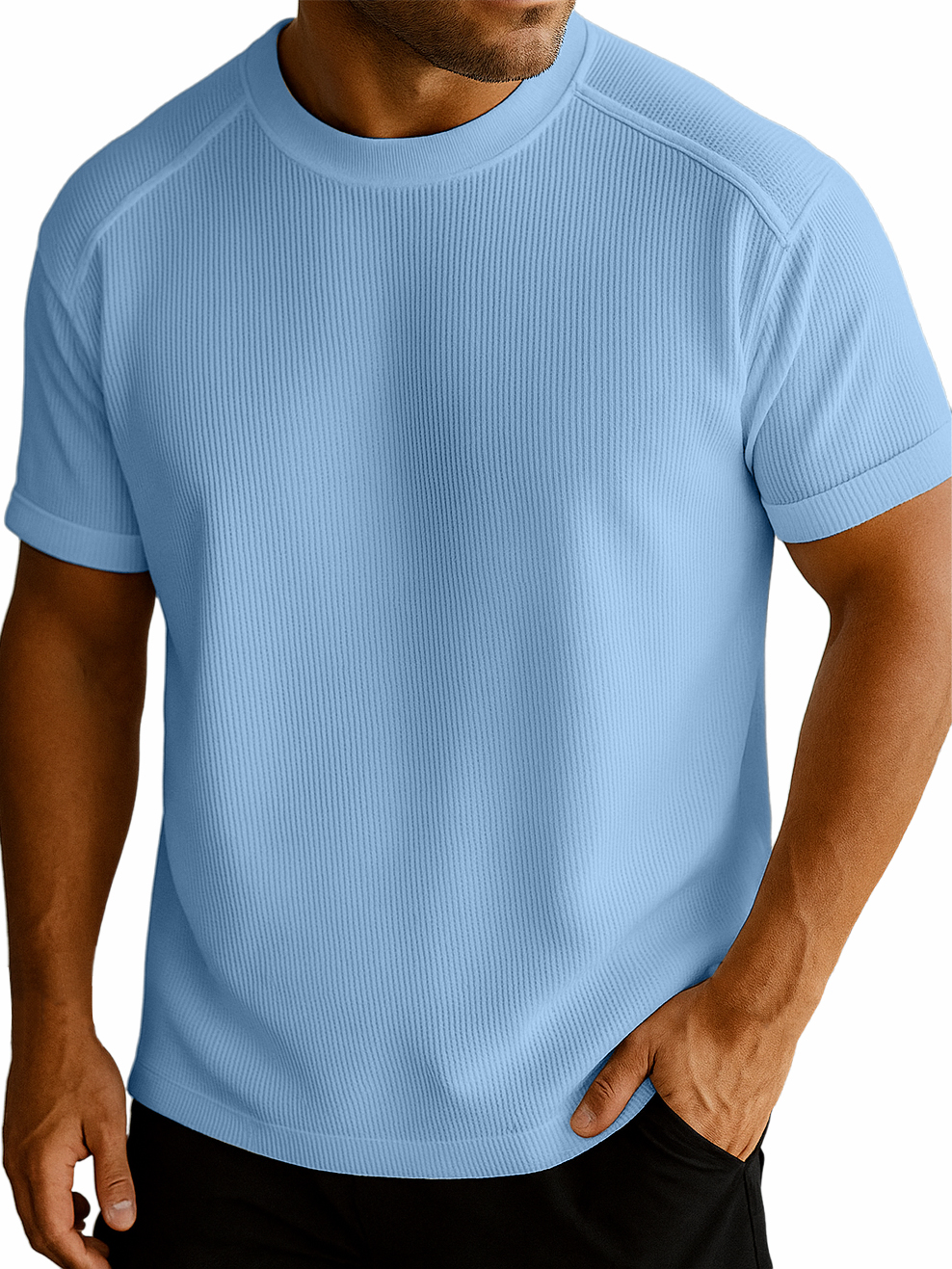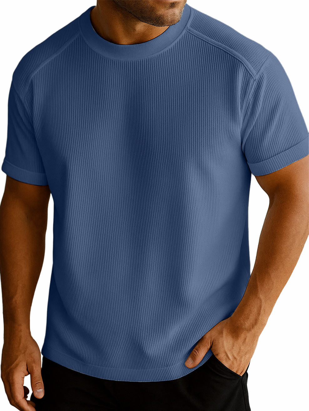 Men's Waffle Fabric Slim Textured Short-sleeved T-shirt