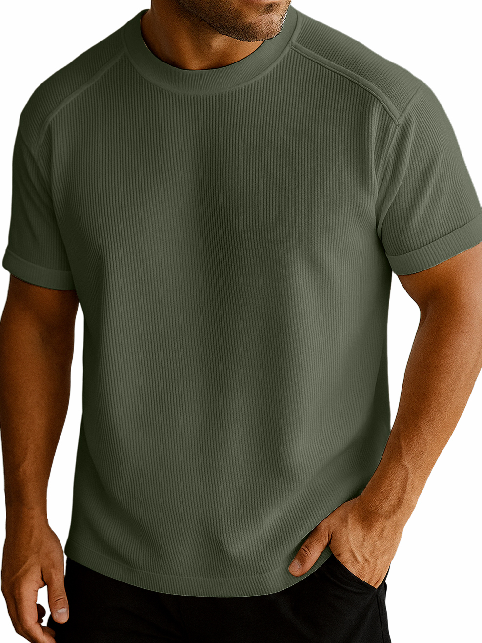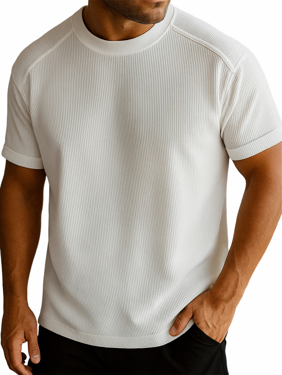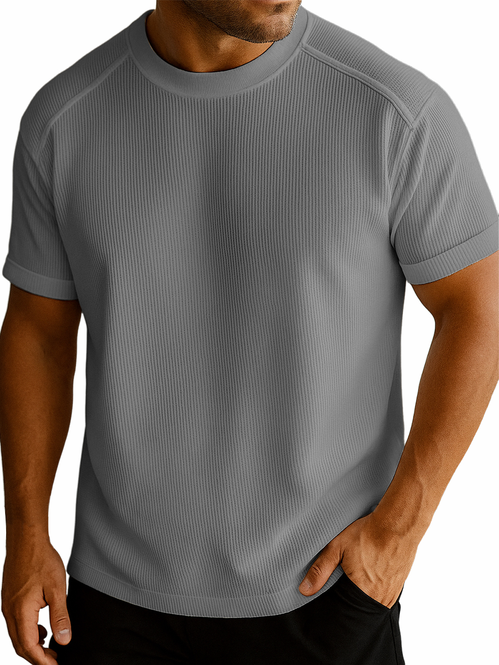 Men's Waffle Fabric Slim Textured Short-sleeved T-shirt
