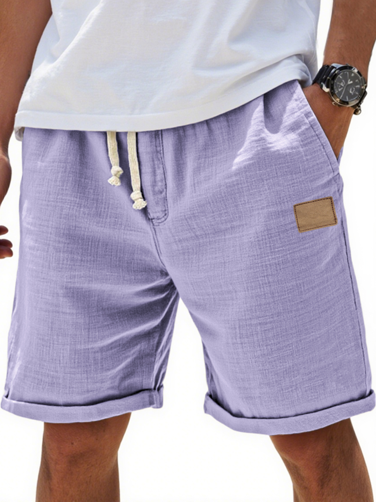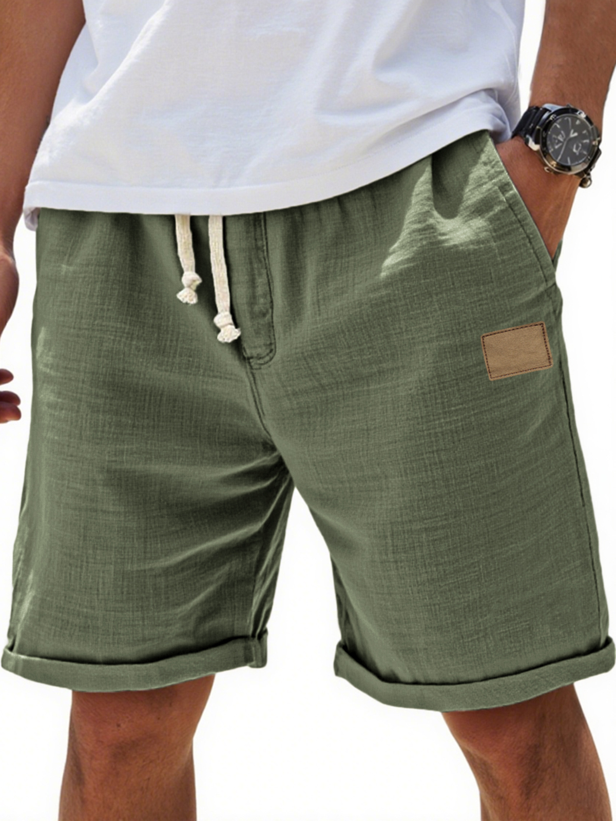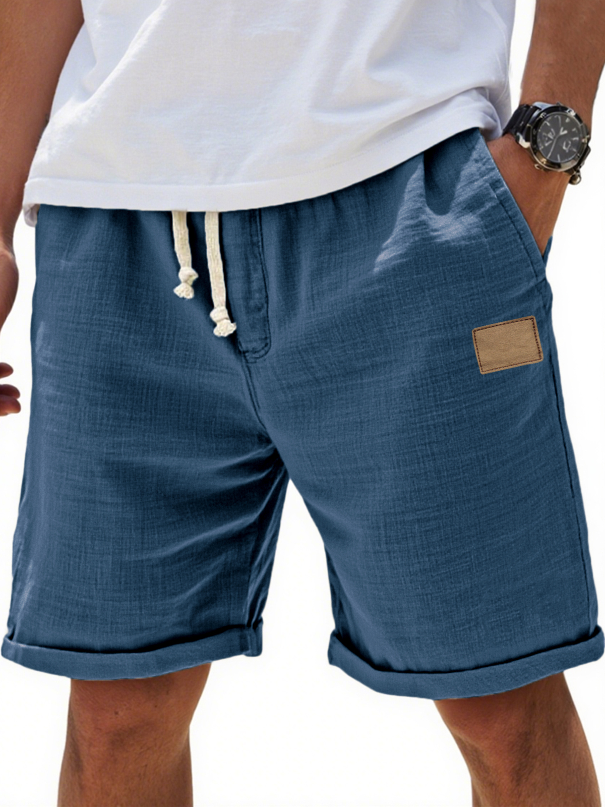 Men's Breathable Cotton and Linen Holiday Lace-Up Everyday Shorts with Embroidered Label