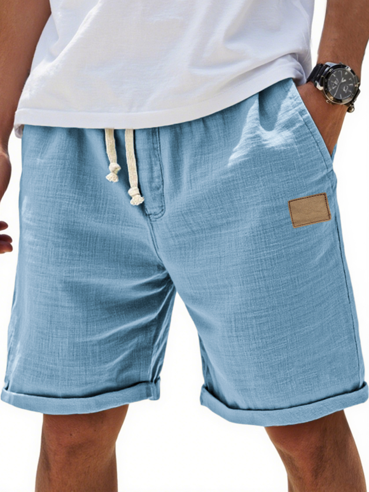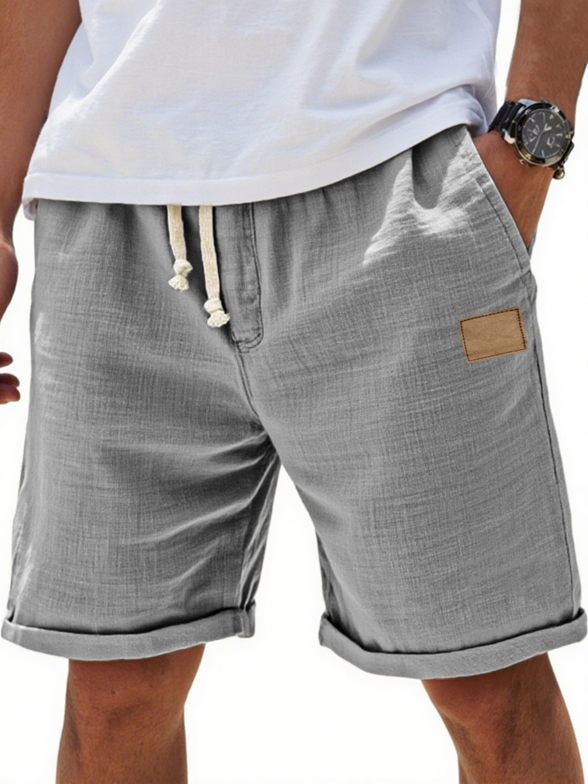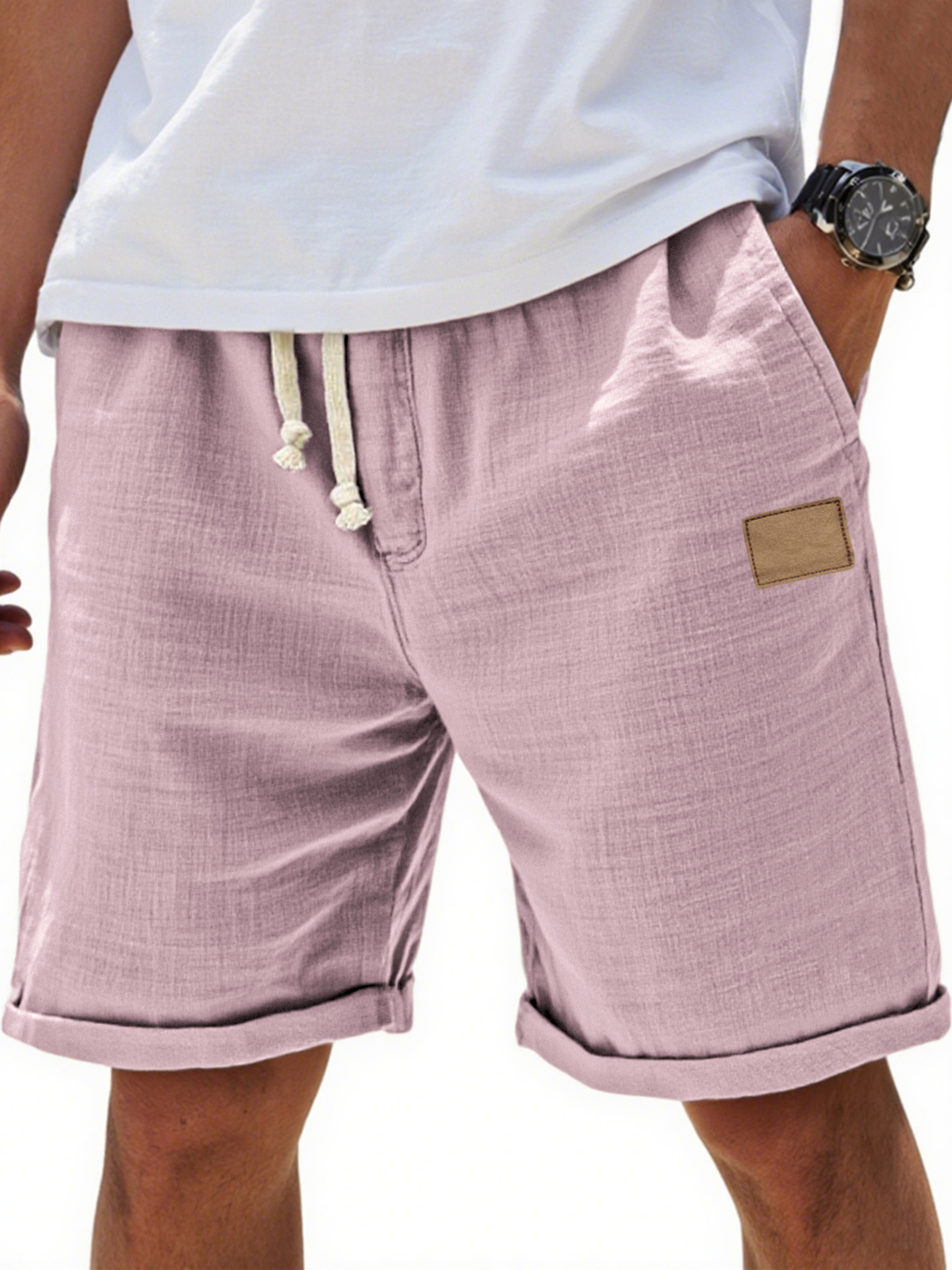 Men's Breathable Cotton and Linen Holiday Lace-Up Everyday Shorts with Embroidered Label