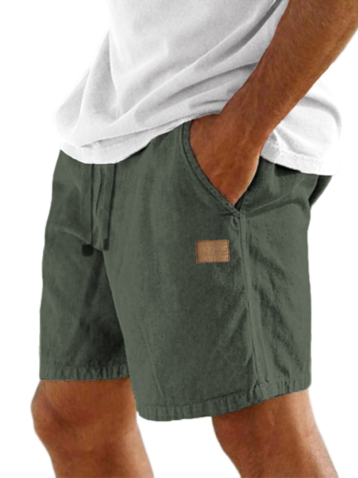 Men's Comfort Linen Embroidered Logo Holiday Casual Lace-Up Shorts with Side Pockets