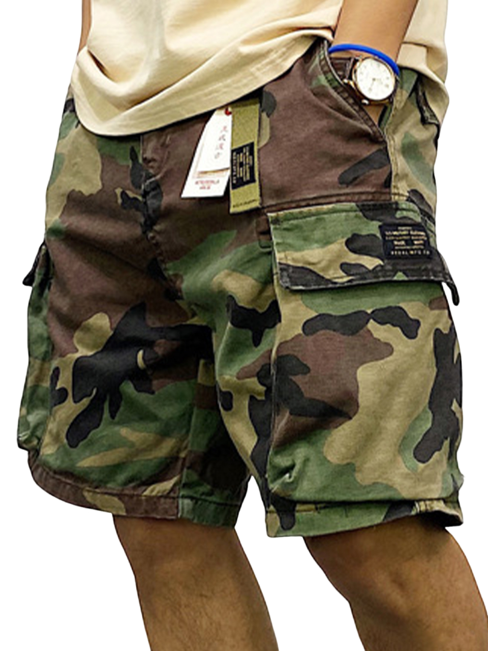 Men's Cotton Camouflage Multi-Pocket Loose Cargo Shorts with Belt