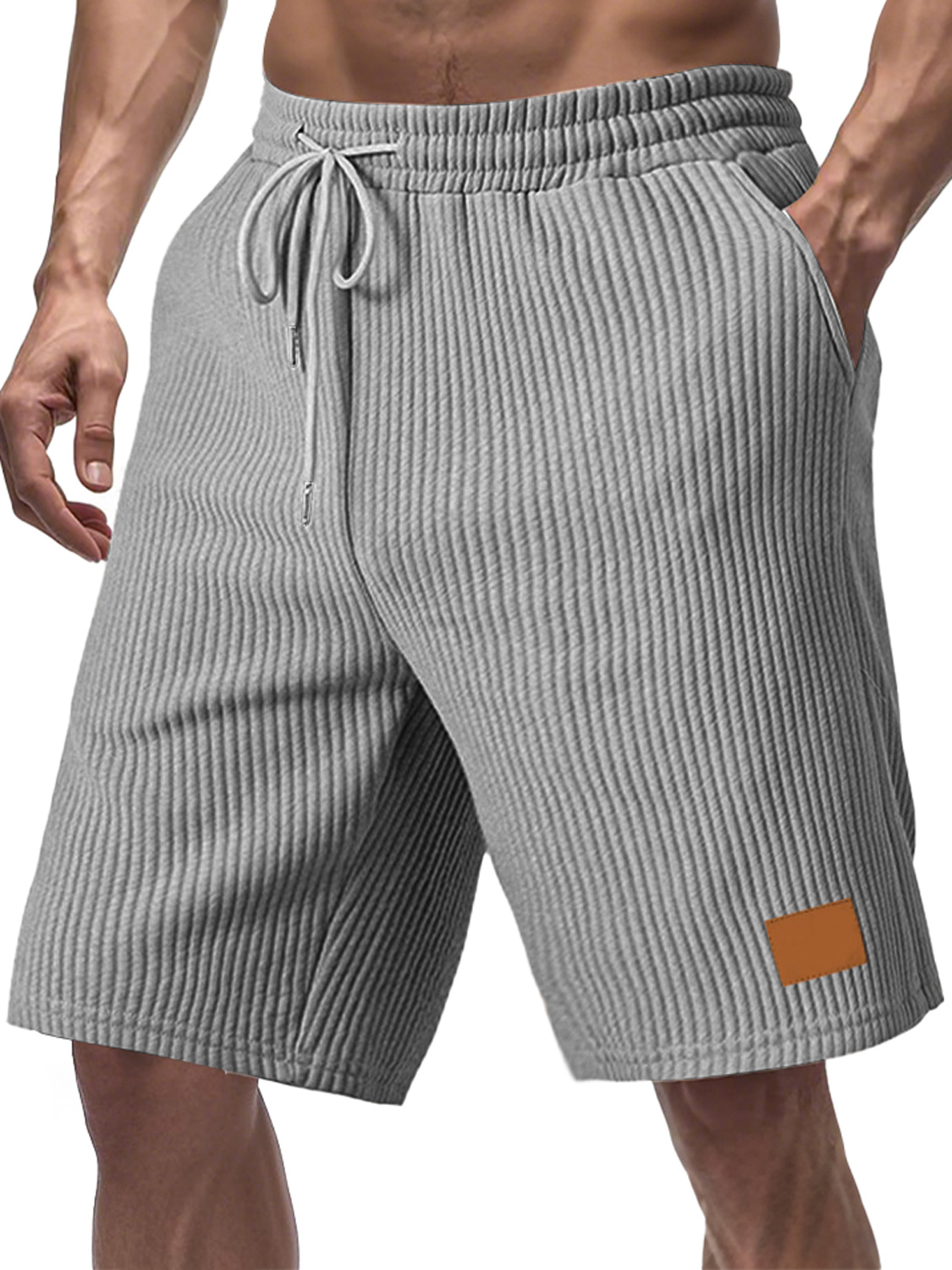 Men's Everyday Striped Embroidered Logo Drawstring Casual Shorts