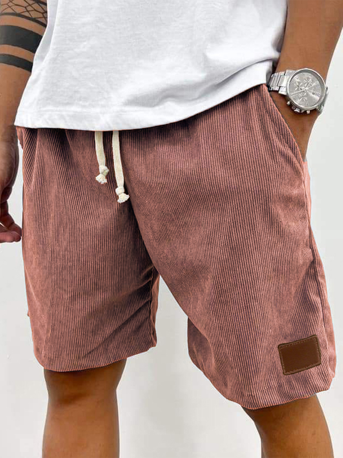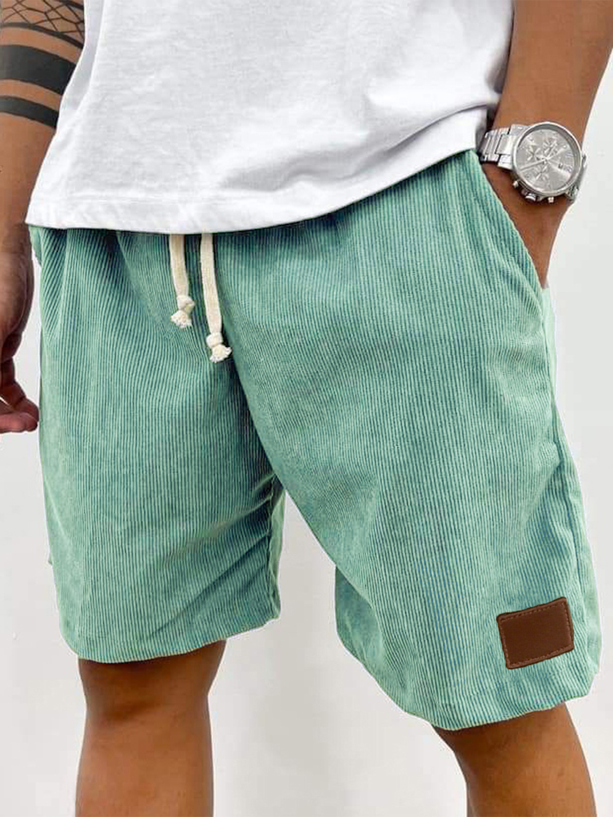 Men's Stylish Corduroy Embroidered Logo Everyday Beach Loose Shorts